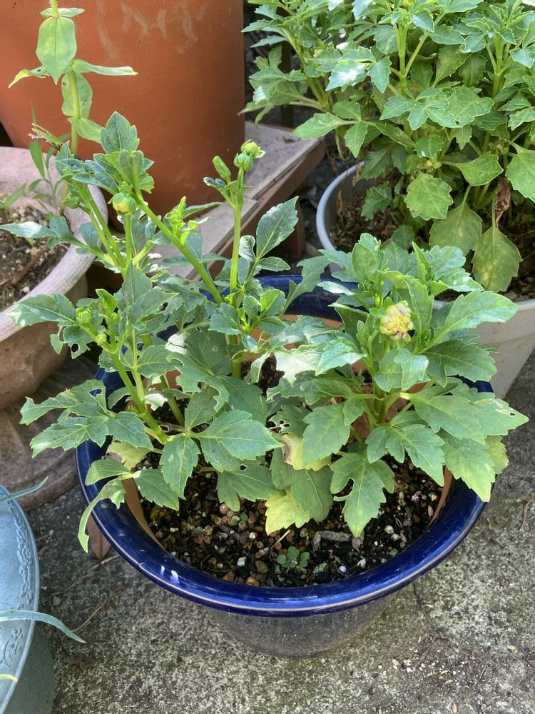 うちのダリア休憩中❣️葉っぱも傷んでますが、涼しくなって来たら復活して欲しいな🥰フジセツさんのダリア、どんなお花が咲くのか楽しみですね🤗