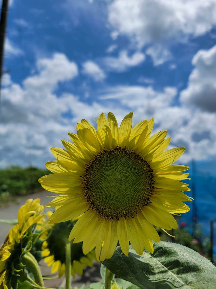 雲の間から青空が ひまわり🌻に似合いますね(*^^)v