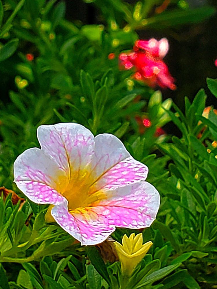 1枚目カリブラコア、2枚目ニチニチソウ、3枚目ランタナ、4枚目ペンタス、5枚目『今日のお花』ホテイアオイです😁