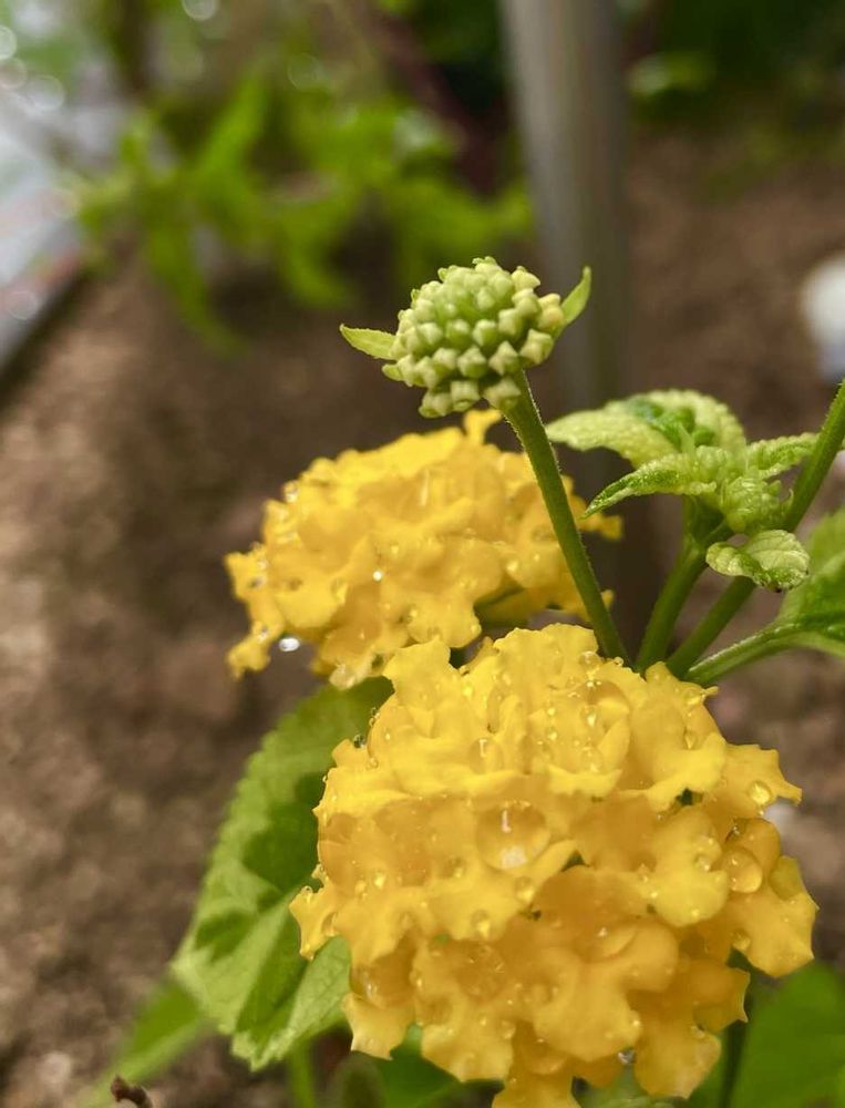 これは❓と すぐわからなかったけど ランタナだったの。 石が積まれてあったのに そこからちゃんと 育って 黄色一色の花を 咲かせてくれました。(⌒‐⌒)