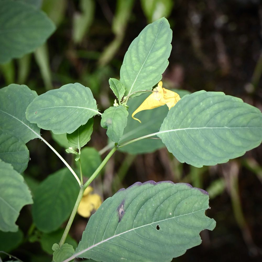 葉は鋸歯で、楕円形から広披針形、ツリフネソウより楕円形に近い傾向がある。