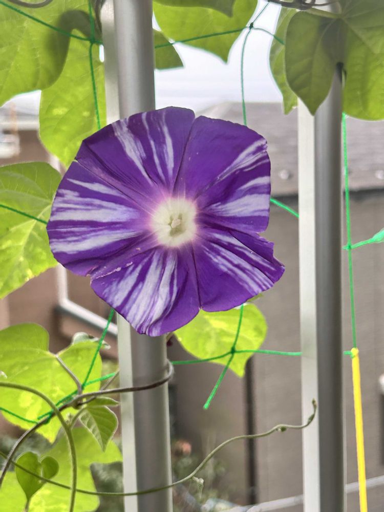 DAISOで迎えた朝顔の種が2つだけ育ち、今朝今年初の朝顔が咲きました☺️