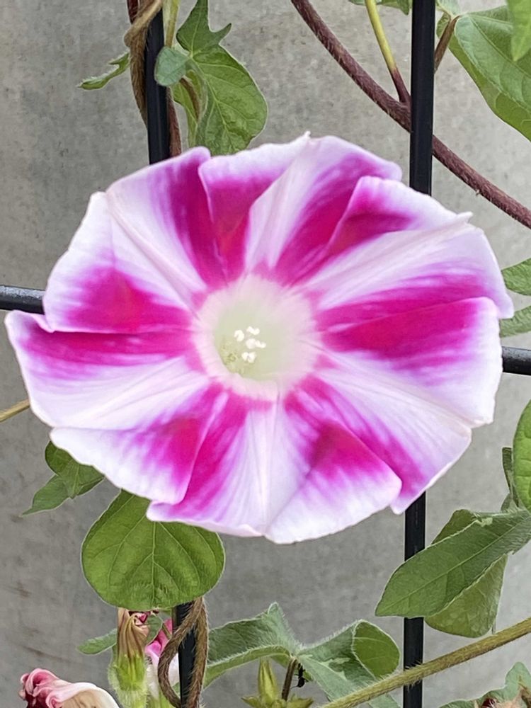 最後のアサガオ 花びらが扇風機の様に畳まれてるのはまゆさんのイタズラ❓️🤔