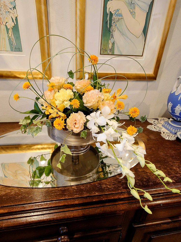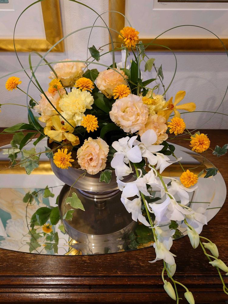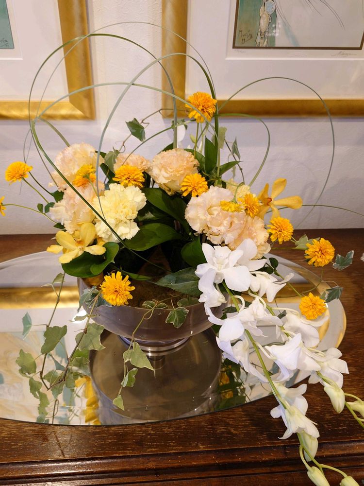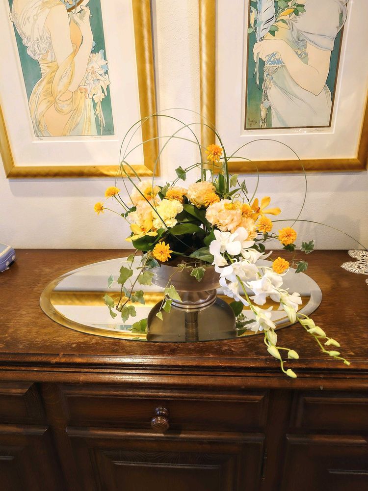 💛🧡💛🟩本当ビタミンカラー同系色で活けても豪華で素敵🤩🥰🥳