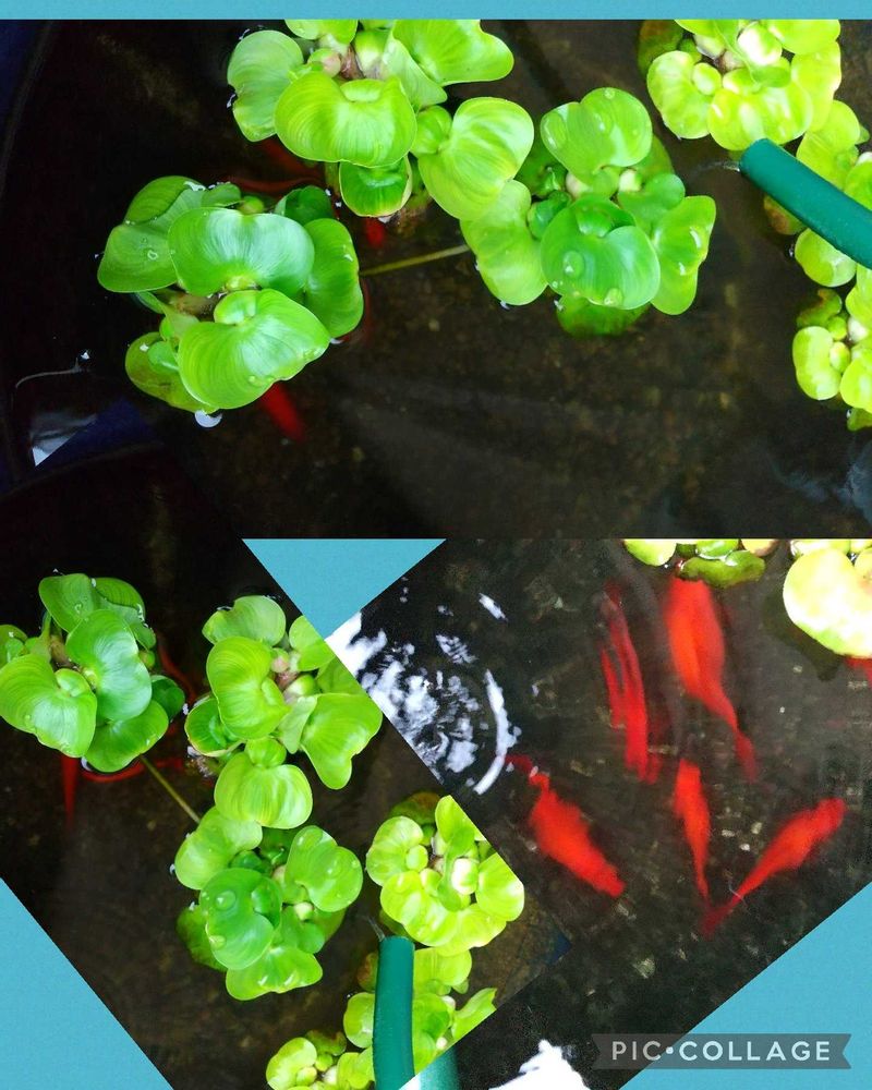 金魚さんとメダカちゃんは別々の水槽です🍀彼らがそれぞれの水槽でホテイアオイさんと同居中ですワ😃