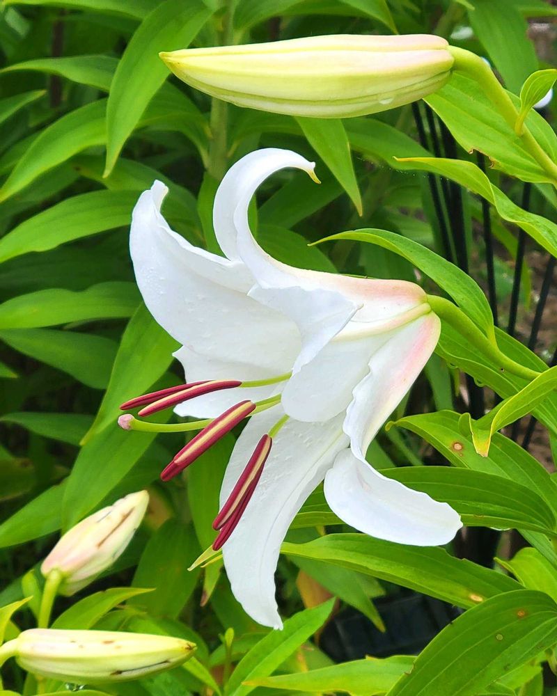 先日リリーパークのスタッフさんが「カサブランカは上向きでは咲きません‼うつむき加減に咲くのがカサブランカですよ☝️」と力説されてました😅
