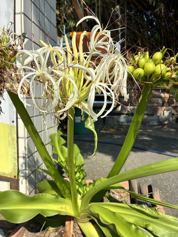 ハマユウは、夜に咲いていい香りを放つらしいけど、いつもこの状態の時しか見られません💧