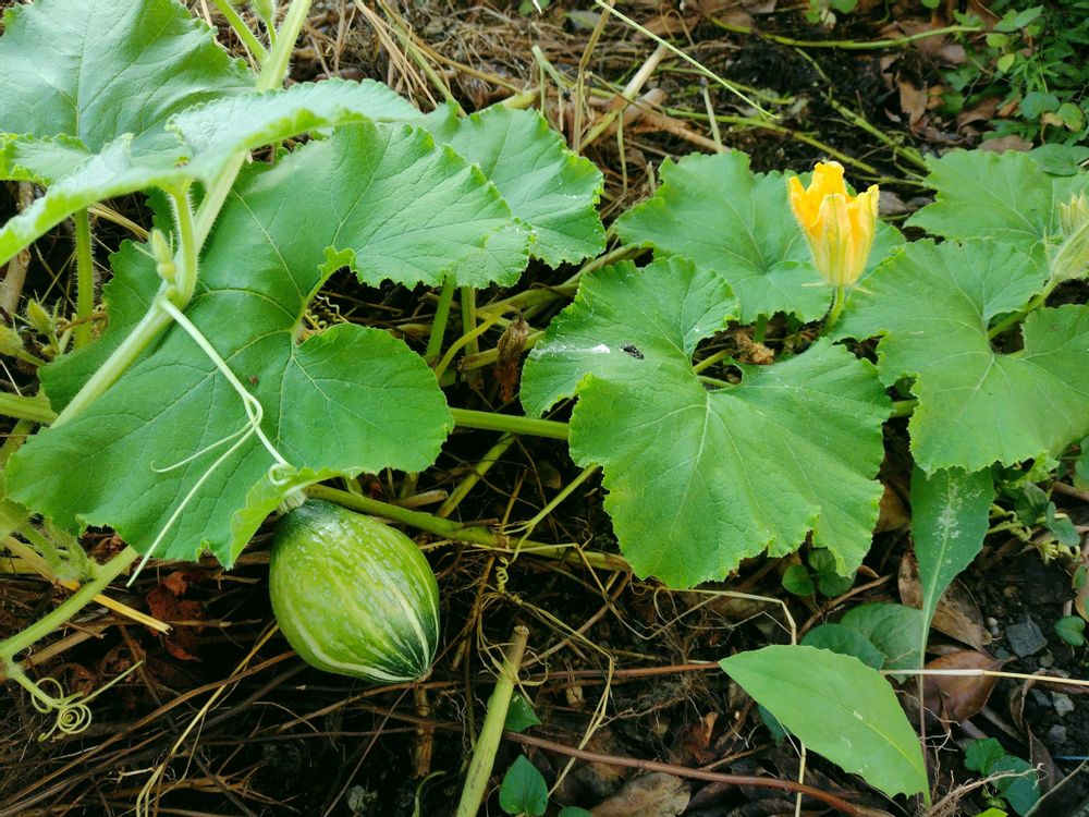 庭の真ん中に埋めた野菜ゴミから芽🌱が出たカボチャ🎃大きくなるのかなぁ😅