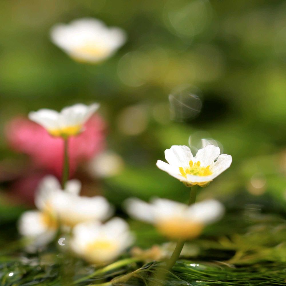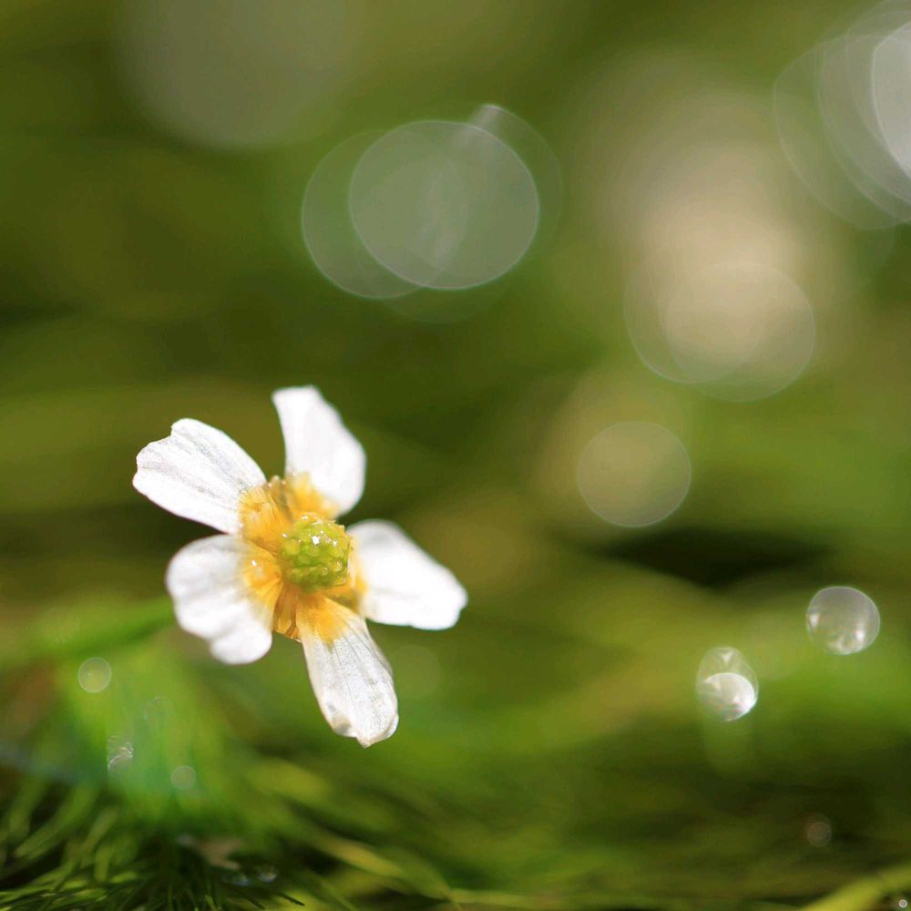 梅花藻は水中や水面ギリギリに咲く小さな花なので、