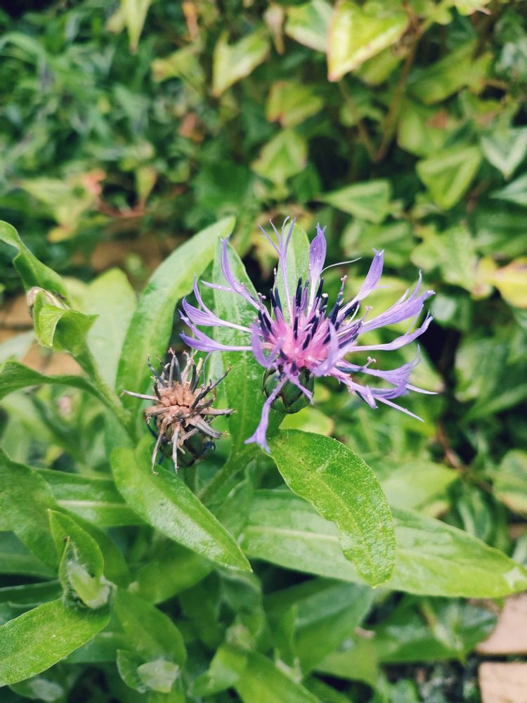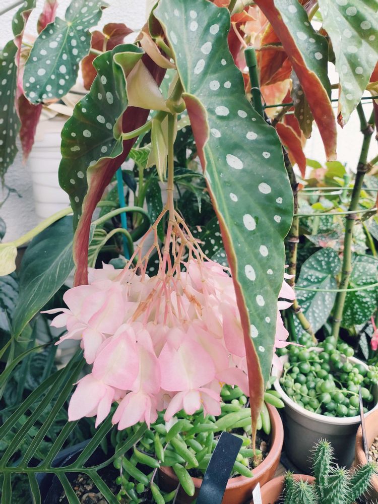 重たそうなベゴニア、伝わりにくいけれど魅惑的な色合いのセントーレア、今年もたくさん咲いたロウグチ💜