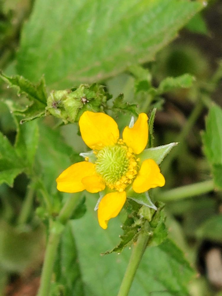 茎先に径15〜20mmになる黄色の花を1個ずつ付ける。