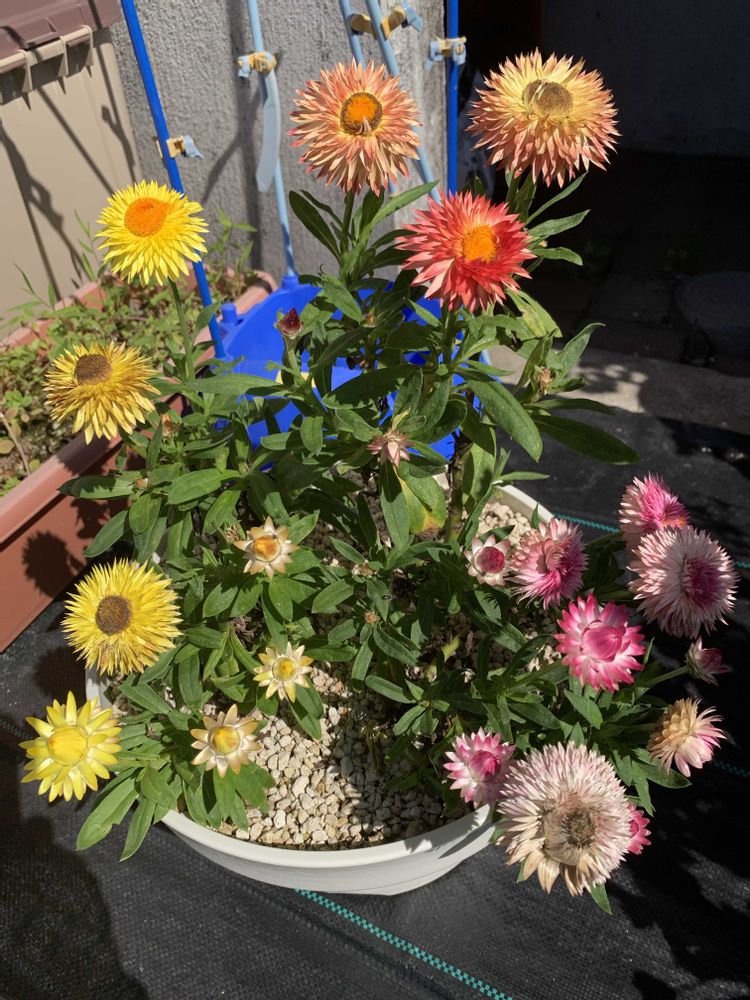 黄色い花,オレンジ色の花,鉢植えの花の投稿画像