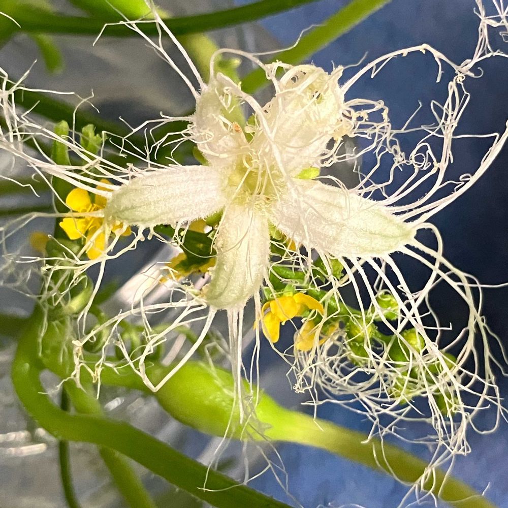 カラスウリの花が綺麗に咲きましたね✨思っていた通りの形の白い花でしたね〜オレンジ色の実からは想像できないですね🤓👌