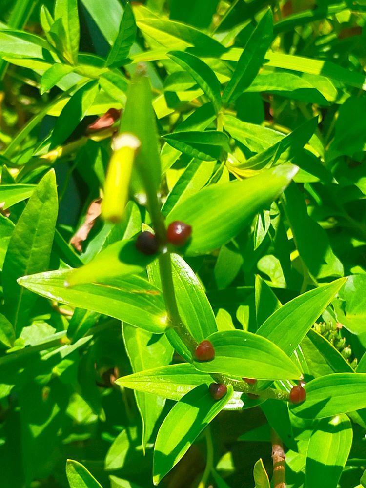 オニユリには、こんなにたくさんの赤紫色のむかごができるのですね😳