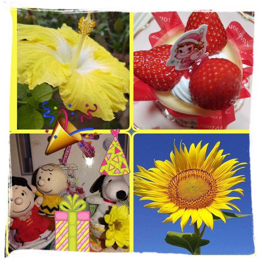 🤗🤗🤗🤗わぁー素敵。アツ同じハイビスカス(*´∀`)人(´∇`)。スヌーピーちゃん、お誕生日。:°ஐ..♡*知らなかった。