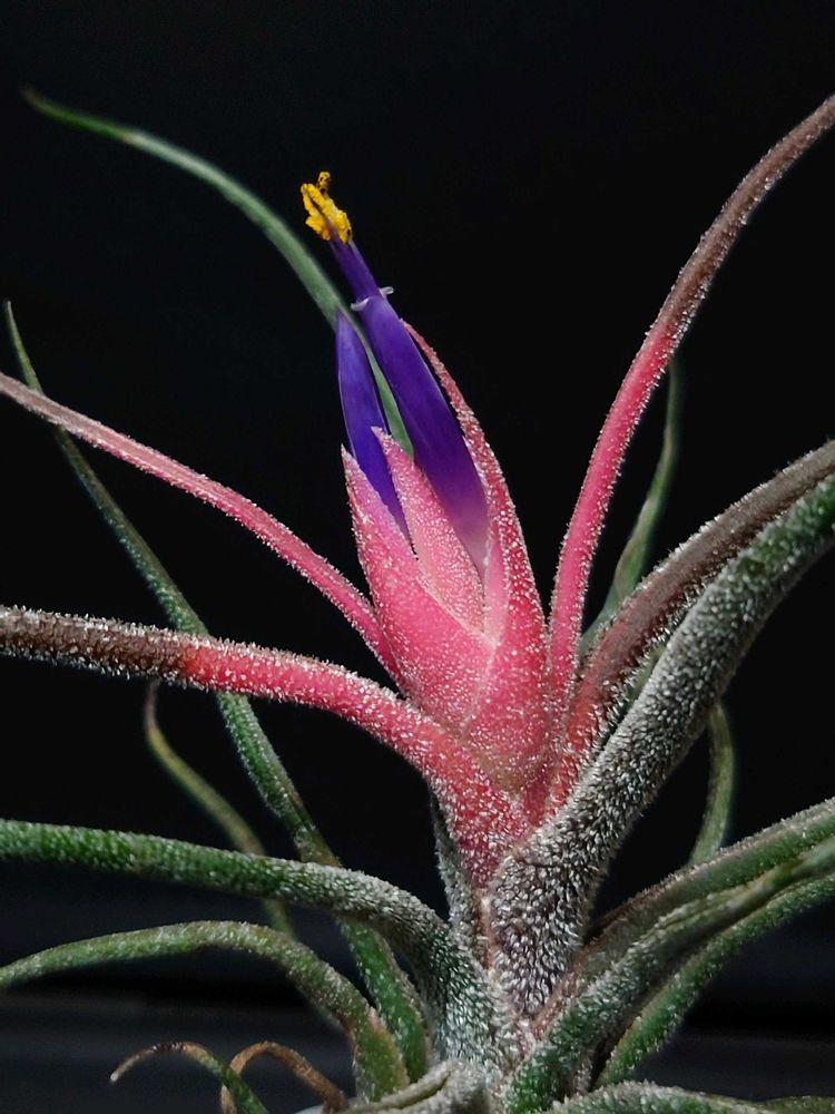 チランジア・プルイノーサ。開花。鮮やかな桃色と藍色のコントラストが綺麗。