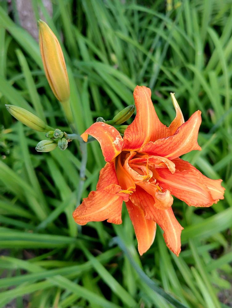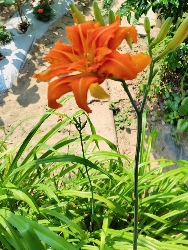 庭のカンゾウ、オレンジの大きな花で庭が華やかに🧡🧡🧡