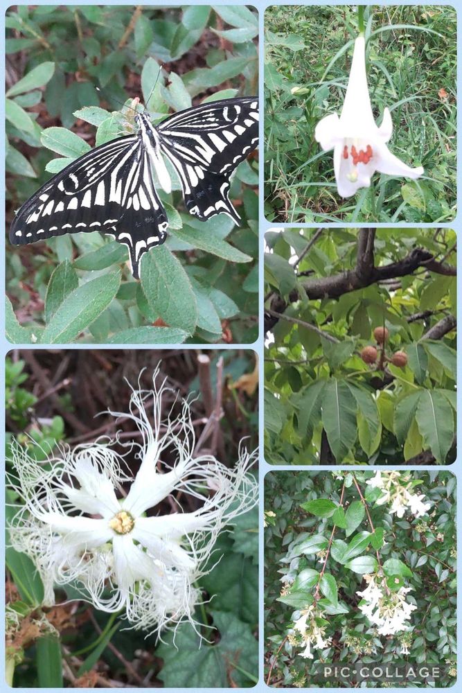 3枚目は、公園の花たち。アゲハが綺麗に羽根を広げていました。