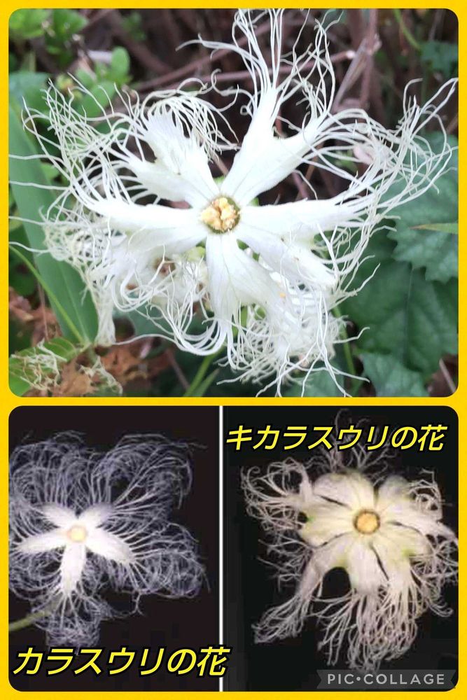 カラスウリとキカラスウリのお花の違い、間違い探しみたいに比べられて面白いですね😁