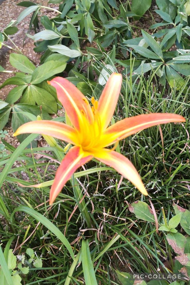 5枚目は、季節外れにヒョロヒョロと、庭で咲いたノカンゾウの花🧡