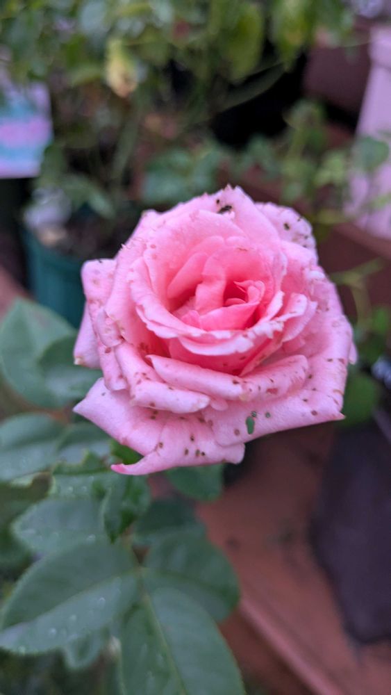 花びらがボロボロですが💦挿し木のクイーンエリザベスが咲きました🩷