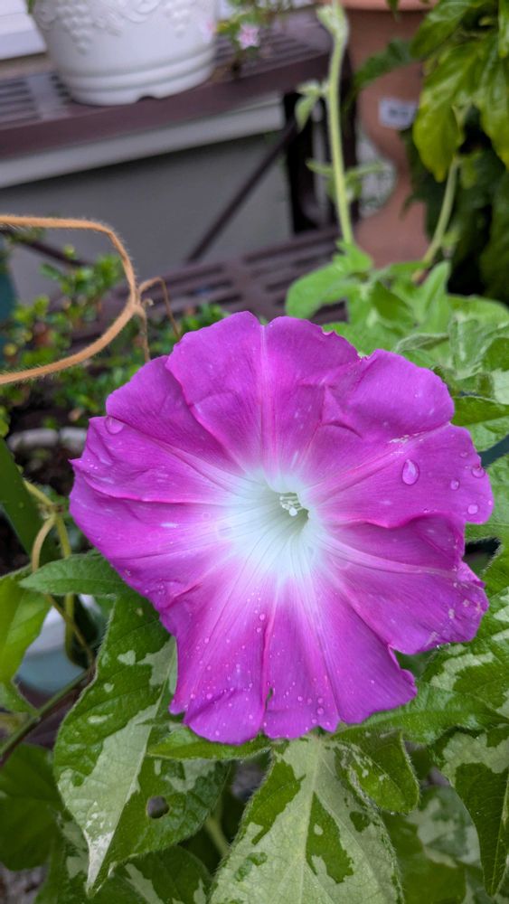 朝顔は午後になると、強烈な太陽で萎れていますが、ここ数日はホッと一息かも知れません💦