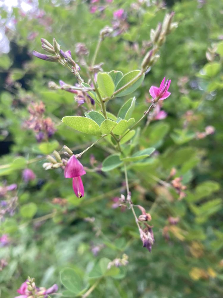 庭の山萩が見頃です。桃色の小さな花が綺麗です。萩は秋の七草の1つです。葉は茶葉の代用にするそうです。
