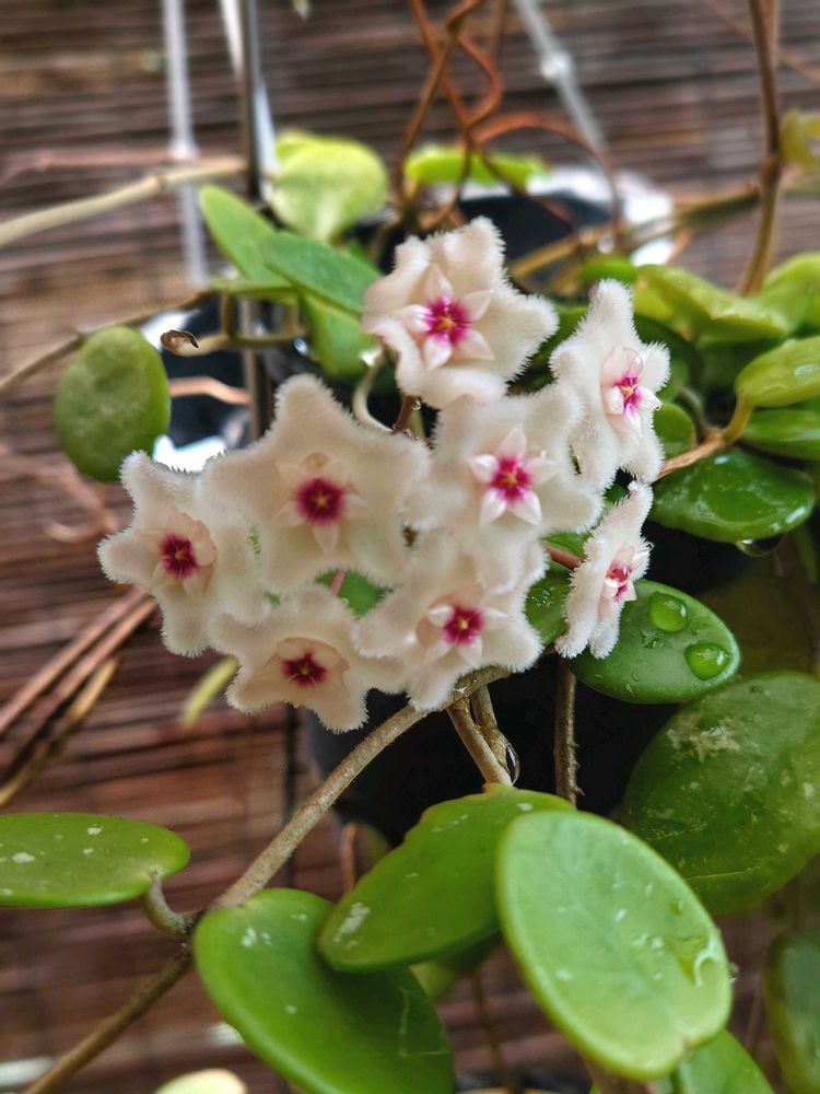 本日は、ホヤ・マチルダさん😊🩷白い花弁肉厚の丸い葉が可愛いです🎶