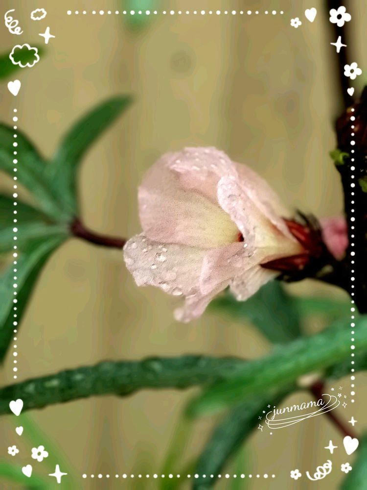 雨の中 ローゼルが咲いています