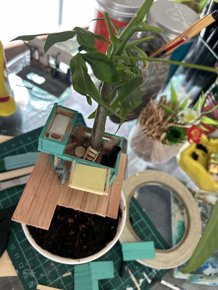 百均やら、 ホームセンターで売ってる 一番小さい観葉植物に、 ちっさい家、作ったりしてます。 ちっさい家用の家具も作ります。 窓にお弁当のふたとかのプラ貼って ガラスっぼく…電気もつきます💡