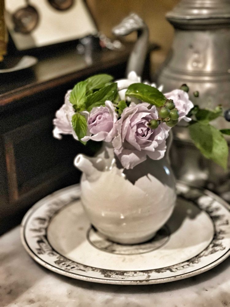 大人色の素敵な器ですね。バラと一体化!最高です