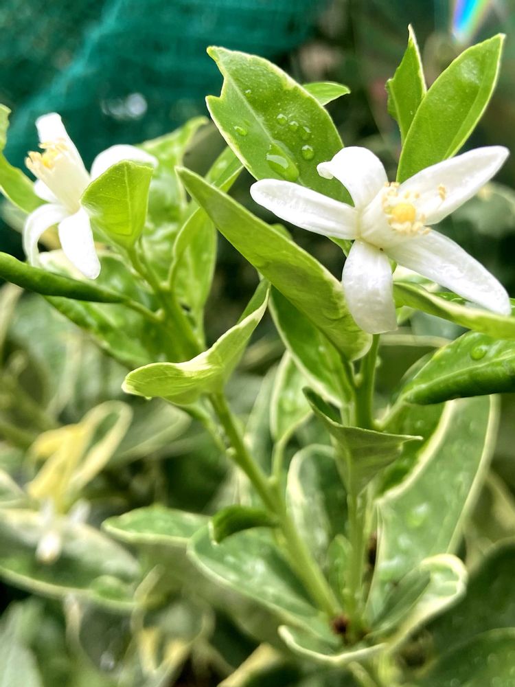 ①10年以上前にお迎えした我が家の小さな庭の斑入り金柑の花🤍🤍🤍🤍が珍しく沢山咲いて‥