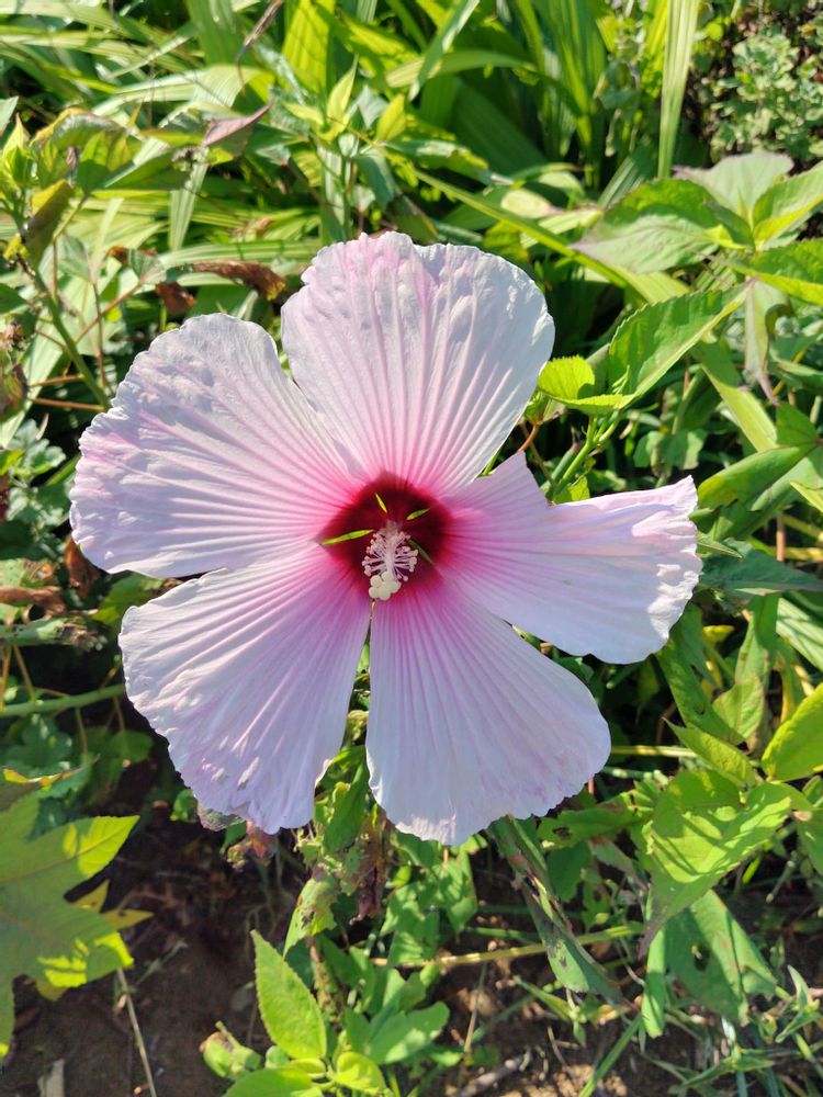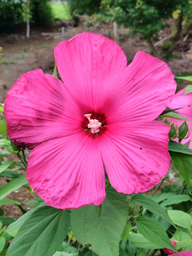 とても大きな目立つ花を咲かせるハイビスカスの仲間である。