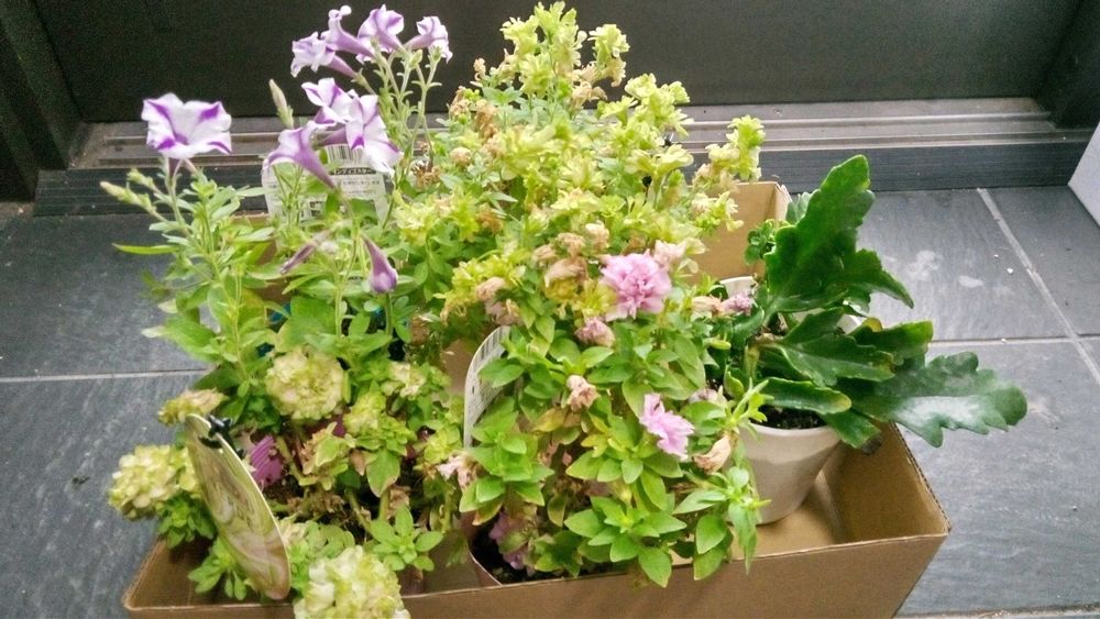 処分市があっており、ペチュニアは、4つで440円(各110円)、カランコエは、110円。