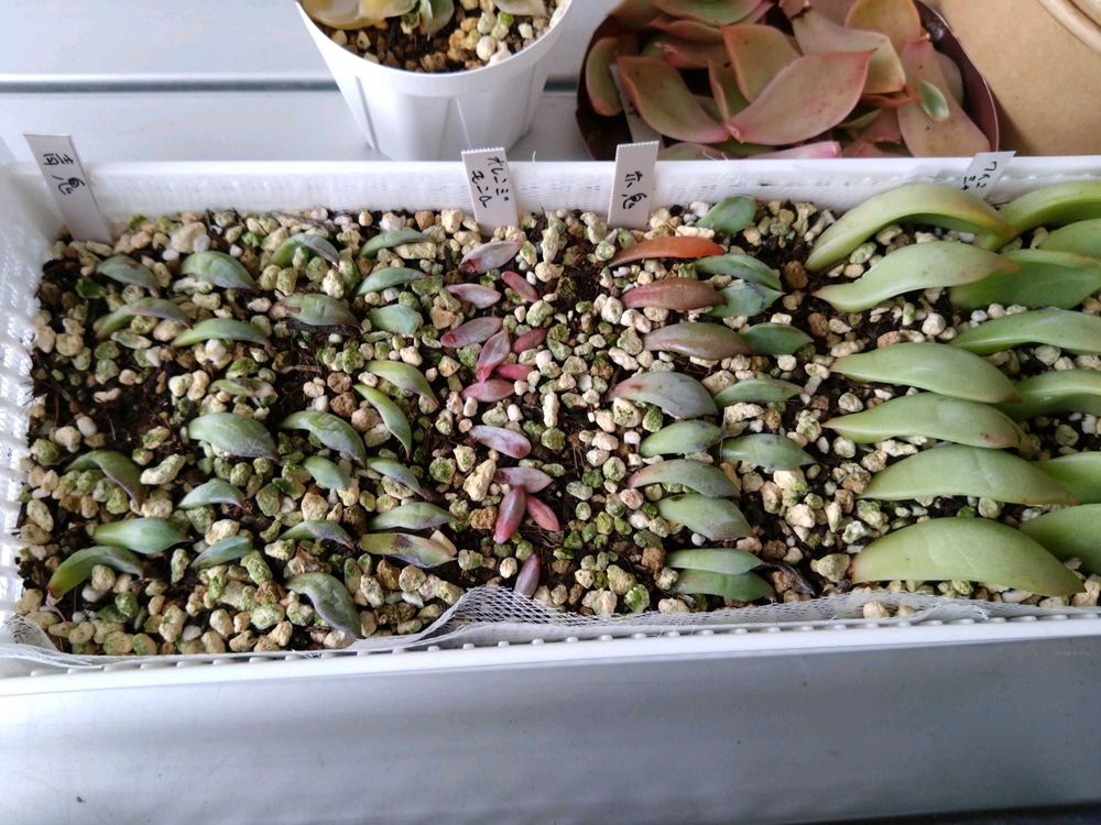 ダメ元で青鬼赤鬼の葉挿しをしてますが赤鬼は兎も角、青鬼が育ってくれるか…
