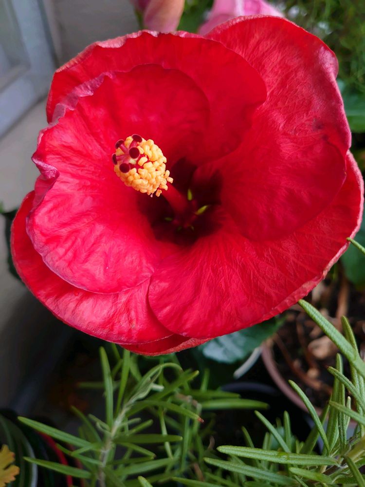 1️⃣ハイビスカス アフロディーテ🌺なんとか開花🌺一部分萎れてしまい開ききらないみたい😣それでも可愛い蕊が見れて嬉しいです😊💕