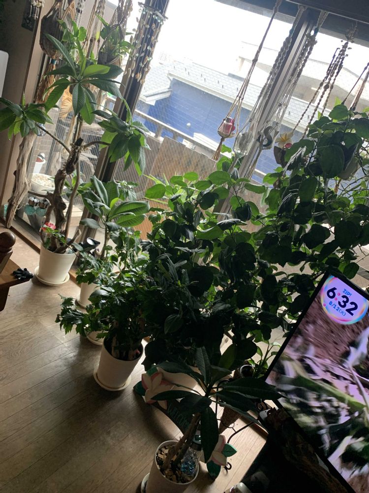 そして最近毎日風が強くて家の中に避難してる我が家の植物達です🥲