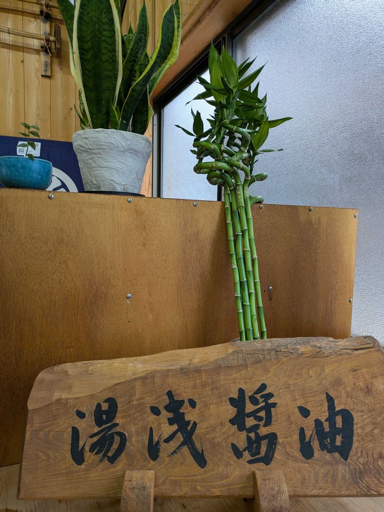 ①カウンターにあったサンスベリアとスパイラルバンブー