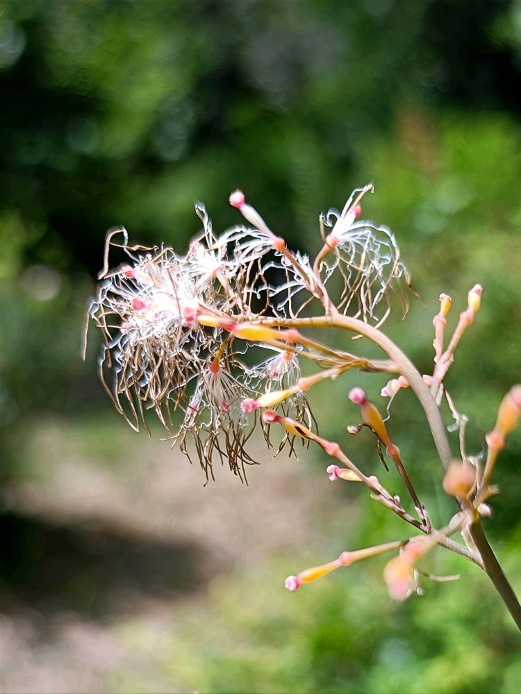 日当たりのよい荒地や道端などに多い。高さ1〜2m。全体に粉白を帯びる。茎の先に大きな円錐花序をつくり、白い花を多数つける。花には花弁はなく、萼片も開花と同時に落ちる。雄蕊は多数あり、葯は線形で花糸は糸状。さく果は長さ約2.5cm。