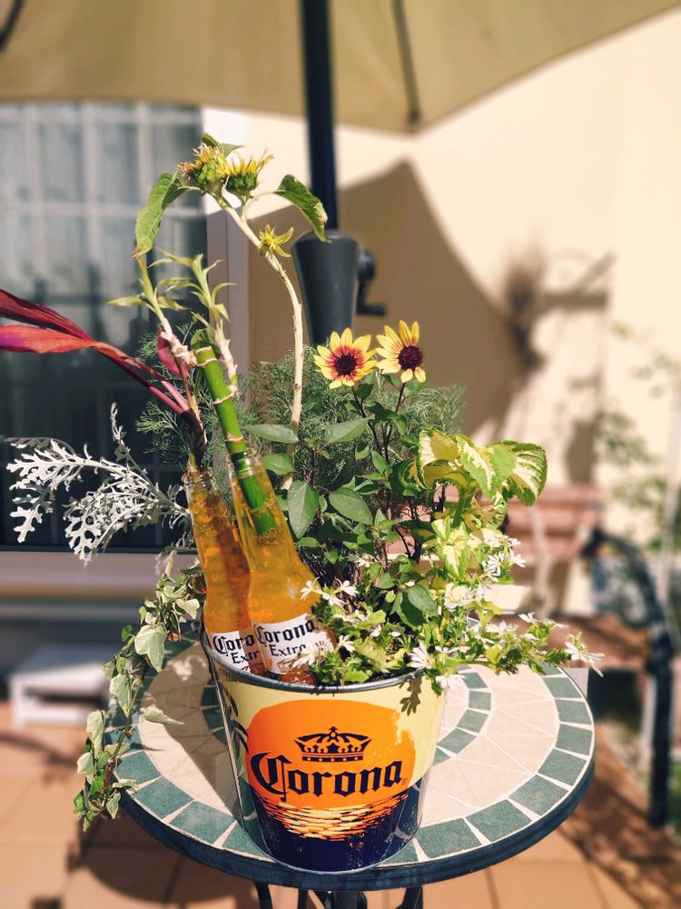 コロナビール自称“非公式”アンバサダーのボクが…今年も「自宅でビアガーデン」的な寄せ植えを作りましたー🍺