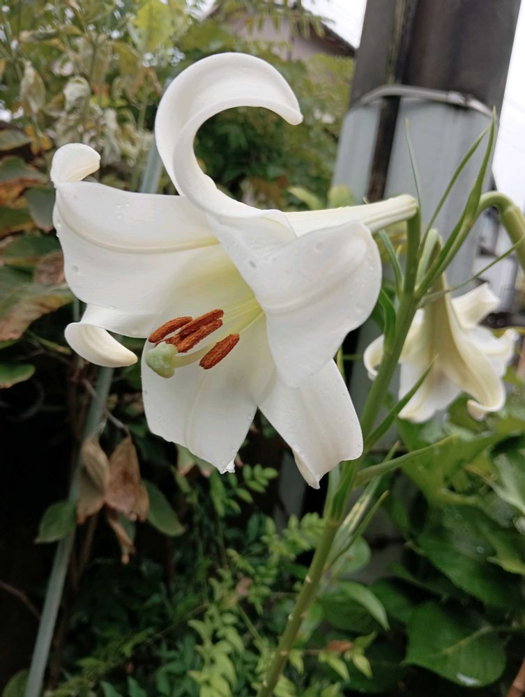 雨上がりの今朝、咲いたゆり💝前を通った、タオ君😄