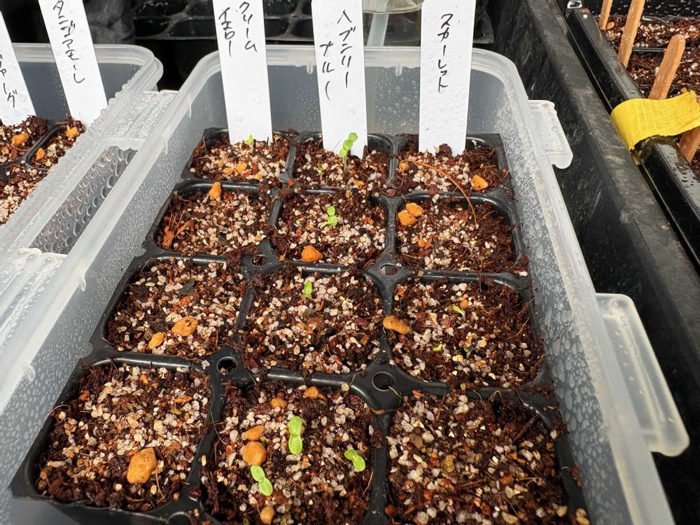 発芽し始めたビオラたち。ヌーヴェルバーグもちゃんと発芽したようだ。純粋に種が発芽してくれる事が嬉しくてたまらない。