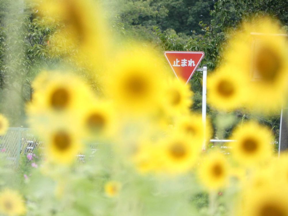 ⋆⸜🌻⸝⋆ひまわりさんの後ろに止まれの標識がありますね😉