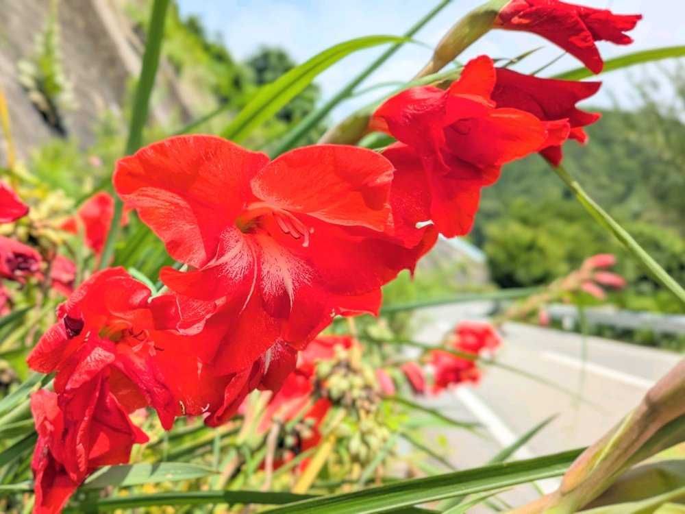 真っ赤なグラジオラス、いいですね。夏ですね。💕