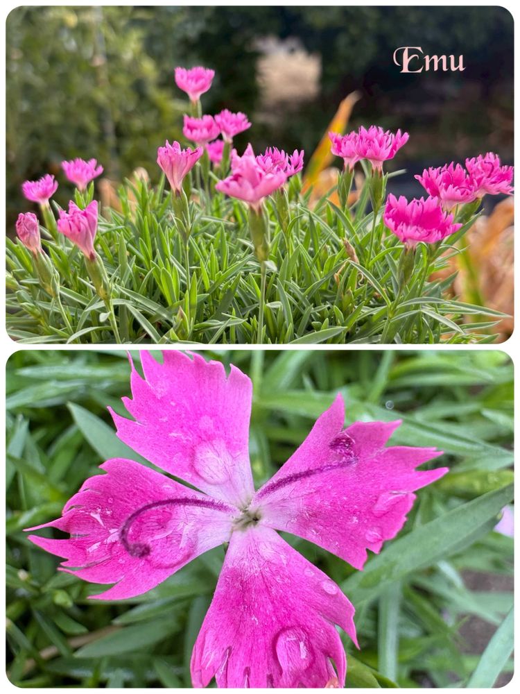 小さななでしこ…少し濃いピンクで蕊クルリン 可愛いですね🌀葉の緑も綺麗💚