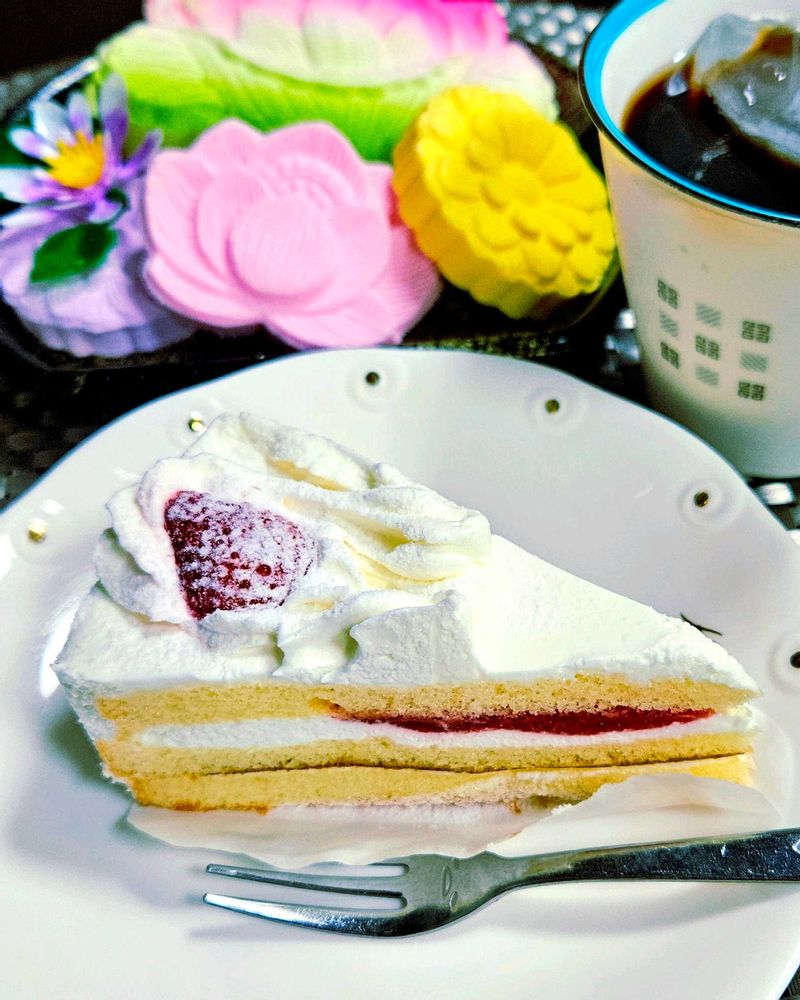 この🍰はスーパーの🍰だからイマイチ🤣乗っかってる🍓も🙅🤣