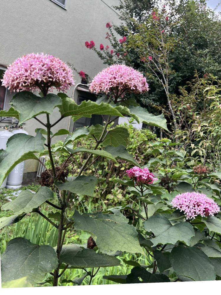 花ともさんの裏庭で、ボダンクサギの花が咲き
