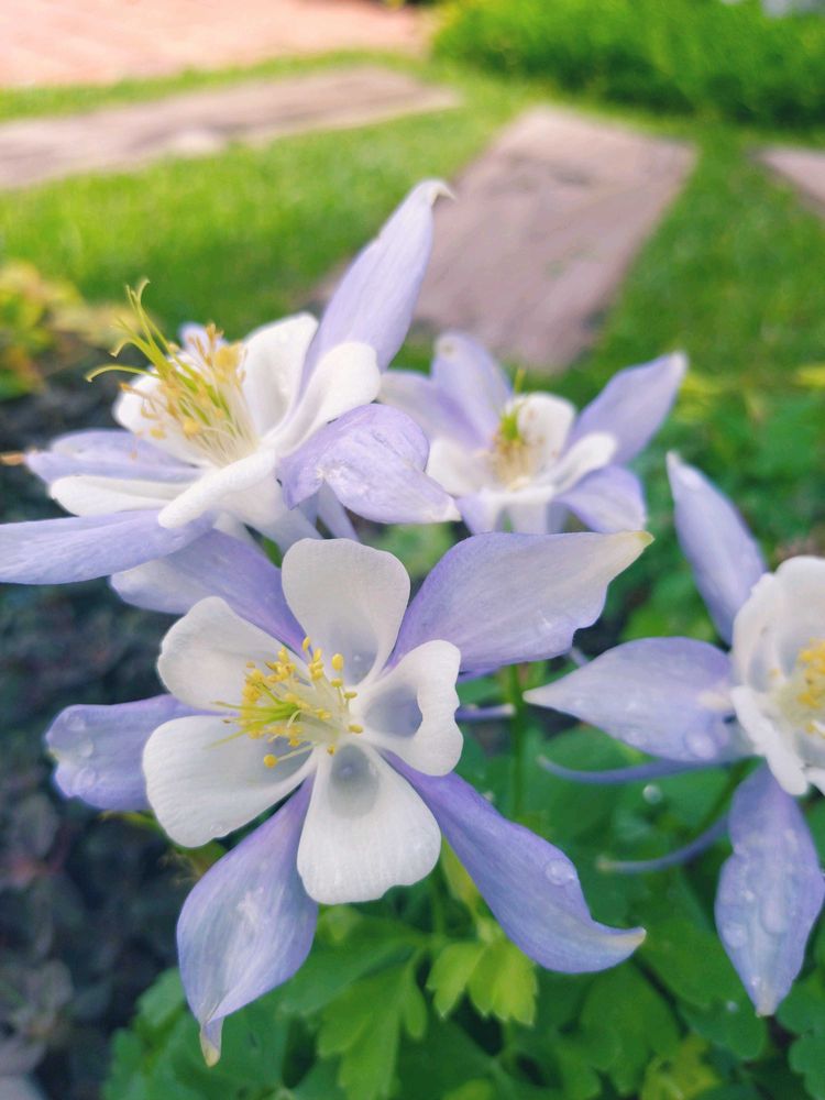 ②③切り戻した西洋オダマキとジキタリス。西洋オダマキは濃紫色もまた咲きそうでした。