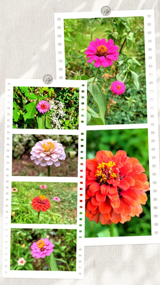 お庭のあちこちで種蒔きっ子ジニアたちが咲いてくれています