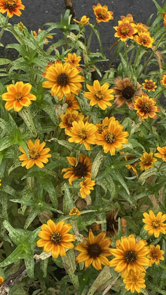 キク科ジニア属の観賞用園芸品種で草丈は30cm前後とコンパクトで、横にこんもりと広がる性質がある